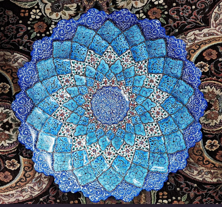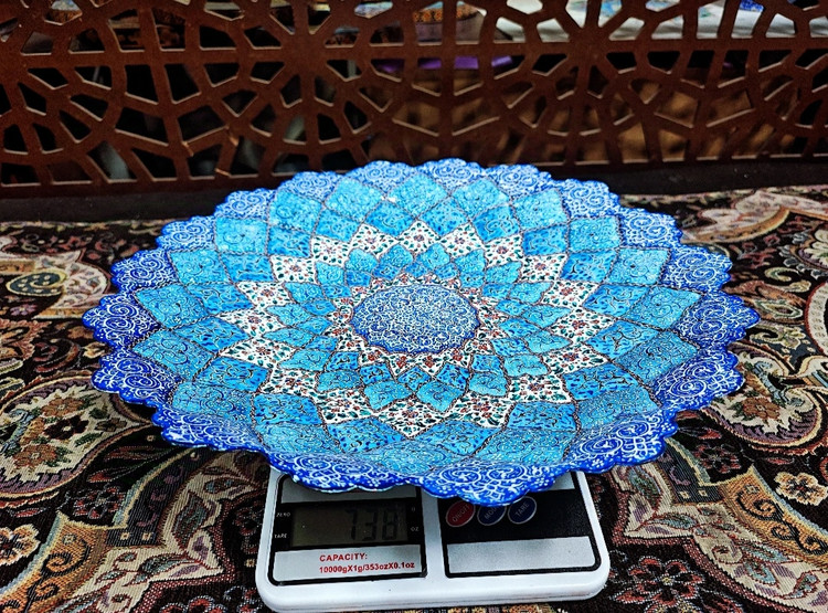 محصول مورد نظر از جنس فلز مس هست و توسط استاد کارشده وسپس کوره شده و تمامی رنگها ثابت و قابل شستشو و استفاده می باشد