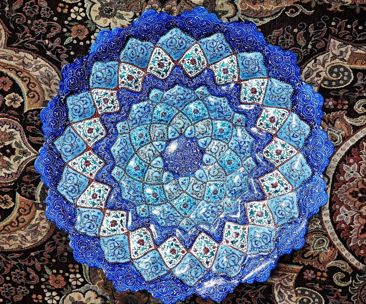محصول مورد نظر از جنس فلز مس هست و توسط استاد کارشده وسپس کوره شده و تمامی رنگها ثابت و قابل شستشو و استفاده می باشد