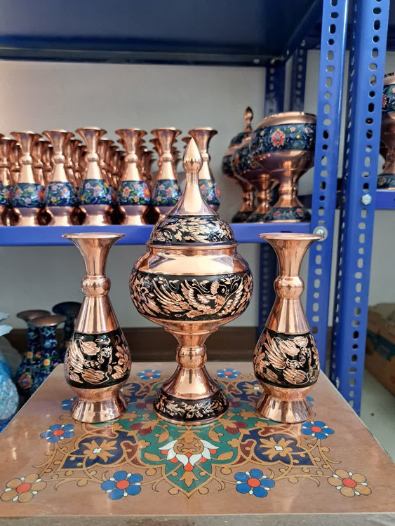 محصول مورد نظر از جنس فلز مس هست و توسط استاد کارشده وسپس در پایان کار پلی استر و نانو شده و در برابر رطوبت مقاوم است