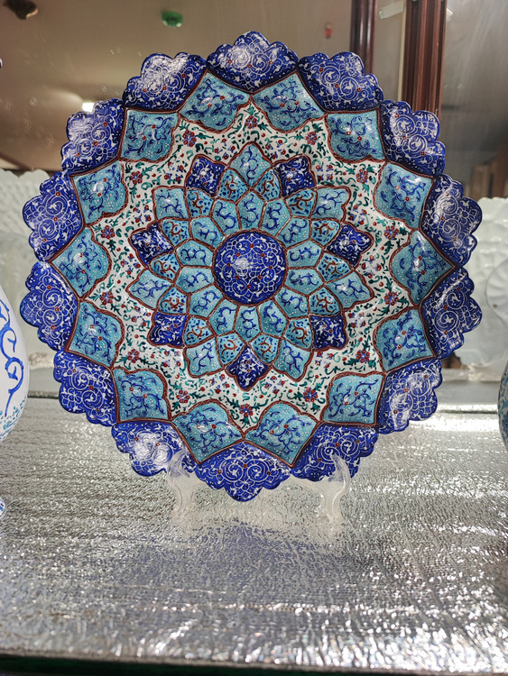 قاب بشقاب میناکاری روی مس قطر30سانت صنایع دستی ایران اصفهان کوره رفته و تمام رنگها ثابت و قابل شستشو