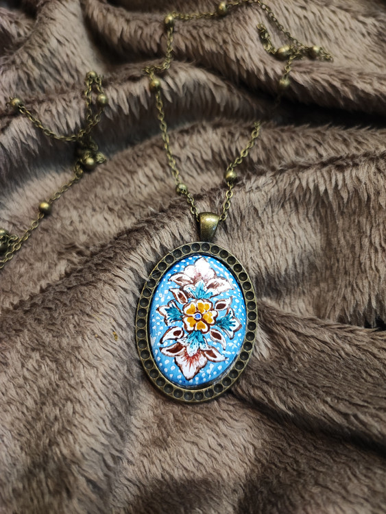 گردنبندمیناکاری روی مس صنایع دستی ایران اصفهان توسط استاد کارشده کوره شده رنگ ثابت مناسب جهت استفاده روزانه